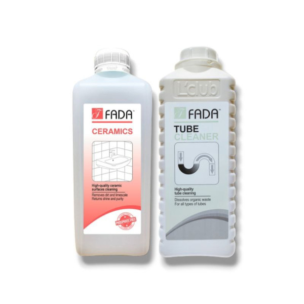 FADA Кераміка — м’який, але потужний засіб для очищення плитки, ванн, раковин та унітазів. Видаляє наліт, плісняву, сечовий камінь і залишки мила, не пошкоджуючи поверхні. Запобігає утворенню вапняного нальоту та розвитку корозії, не пошкоджуючи хромовані поверхні. Має приємних запах, легко змивається, швидко висихає та не потребує додаткового протирання поверхонь насухо. Економний у використанні. Екологічна безфосфатна формула: не містить фосфатів та інших шкідливих речовин.