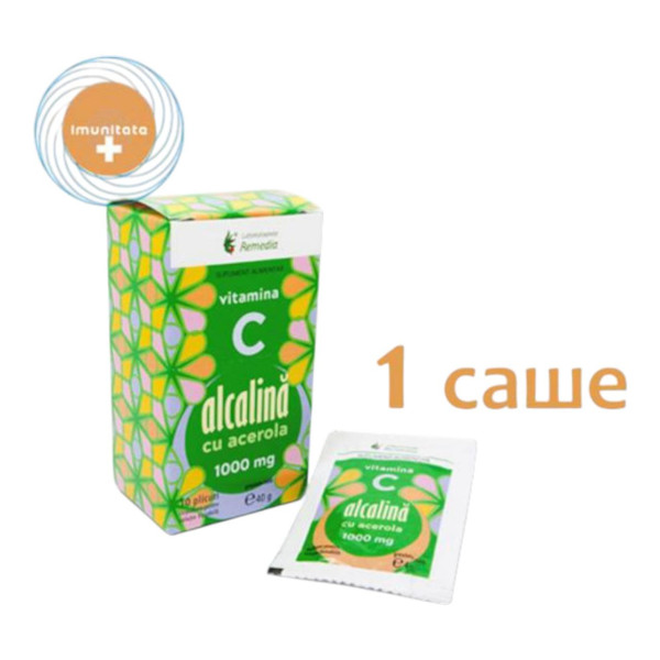 Добавка дієтична лужний вітамін с "Vitamina c alcalina cu acerola 1000 mg", 1 саше